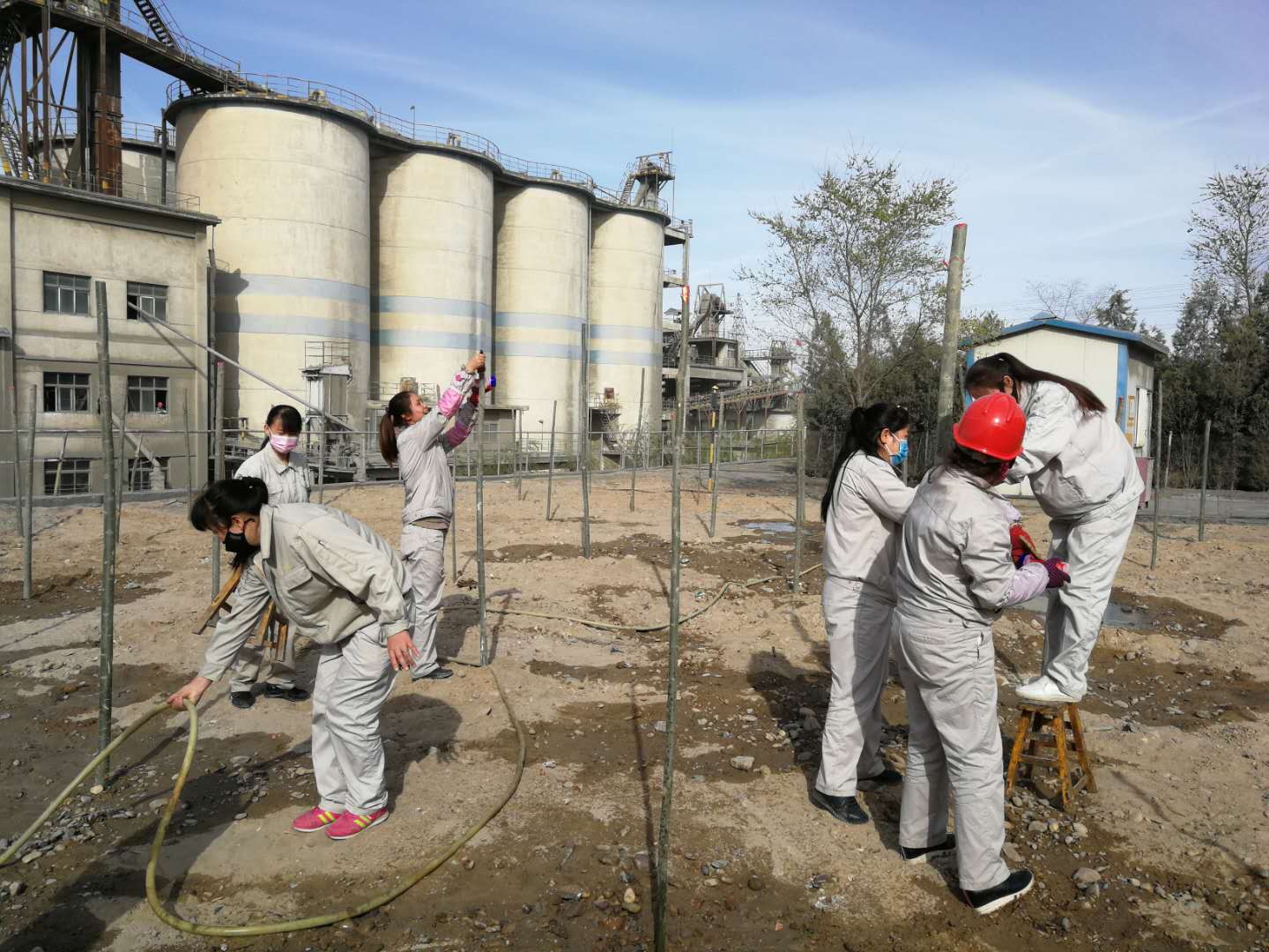 4月10日和11日,資源再生公司組織所有日勤人員栽種樹木。先后在東大路西側,4#電石爐西側,職工回民餐廳門口及成品裝置東邊等等地方栽種樹木上千棵。大家齊心協力,扶樹的、填土的,每個人都在努力的加快進度,頭上冒出了汗珠,渾身酸痛,可大家仍然堅持著,短短兩天時間就將所有計劃的樹木全部栽種完畢。