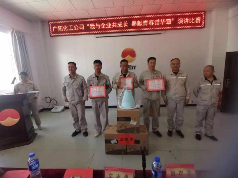 為慶祝中國共產(chǎn)黨成立100周年和金昱元建廠30周年,進(jìn)一步弘揚(yáng)我公司的企業(yè)文化,激發(fā)職工干事創(chuàng)業(yè)、高效跨越發(fā)展的活力,凝聚企業(yè)持續(xù)和諧發(fā)展的合力。2021年5月27日,寧夏金昱元廣拓能源有限公司舉辦了關(guān)于“我與企業(yè)共成長•奉獻(xiàn)青春譜華章”主題演講比賽活動(dòng)。